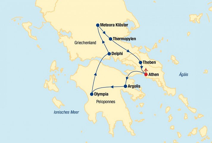 Mit dem lebendigen Athen und der markanten Halbinsel Peloponnes präsentiert sich Ihnen Griechenland als einzigartige Schatzkammer. Nirgendwo sonst ist eine so exklusive Auswahl an kulturhistorischen und landschaftlichen Höhepunkten auf so kleinem Raum zu finden. Kulturfreunde und Naturliebhaber genießen gleichermaßen ein besonderes Erlebnis, um den besten Überblick über das alte Hellas zu erhaschen. Auf der Akropolis entstand die erste Demokratie, in Olympia wurden vor 2.700 Jahren schon sportliche Wettkämpfe bestritten und im legendären Orakel von Delphi wurden die Geschicke der antiken Welt vorhergesagt. Ein weiterer Höhepunkt Ihrer Reise ist der Besuch der berühmten Klöster von Meteora (UNESCO Weltkulturerbe). Der mystische Süden des Festlandes bietet aber weitaus mehr: gewaltige Berge, fruchtbare Täler, kristallklares Wasser, Traditionen und köstliche Delikatessen werden Sie verzaubern! Willkommene Entspannung genießen Sie während Ihrer Rundreise in den auserwählten 3- und 4-Sterne Hotels. Also worauf warten Sie noch?