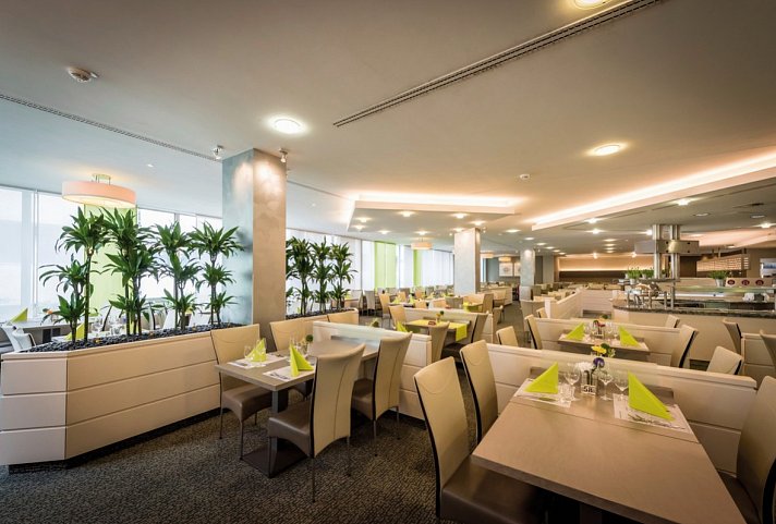 - Halbpension Plus: Frühstücksbuffet, Abendbuffet mit Live-Cooking und ausgewählten Tischgetränken (Wasser, alkoholfreie Getränke, Fassbier und Hauswein, 18-20 Uhr)